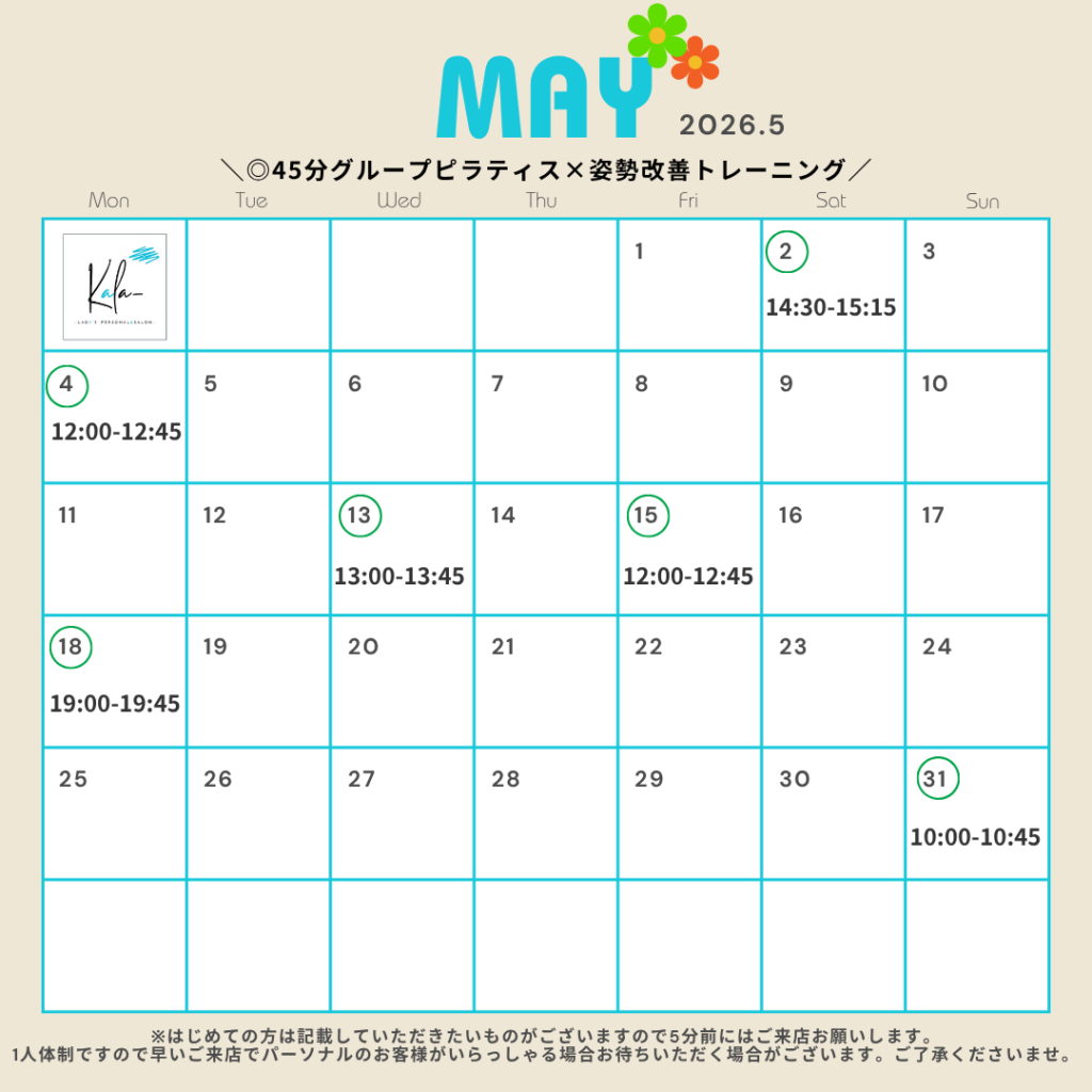 5月のグループレッスンの日程でございます!